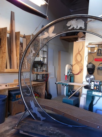 In Spring 2012, the REC Foundation commissioned artist Robert Roemisch to create an outdoor sculpture titled “Circle of Life.” The piece features a wooden bench curved like a river and welded to a grand arc of river-life animals depicted in solid sheet steel. The sculpture is permanently installed along the recent expansion of the Charolais trail which connects to the Salinas River trail.